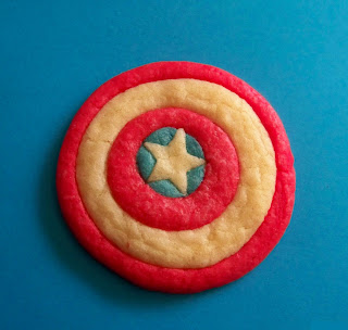 I couldn't let this day pass without some red, white and blue cookies, and the nerd in me wondered: what better way to celebrate than to make one of my all-time favorite character's iconic shield?